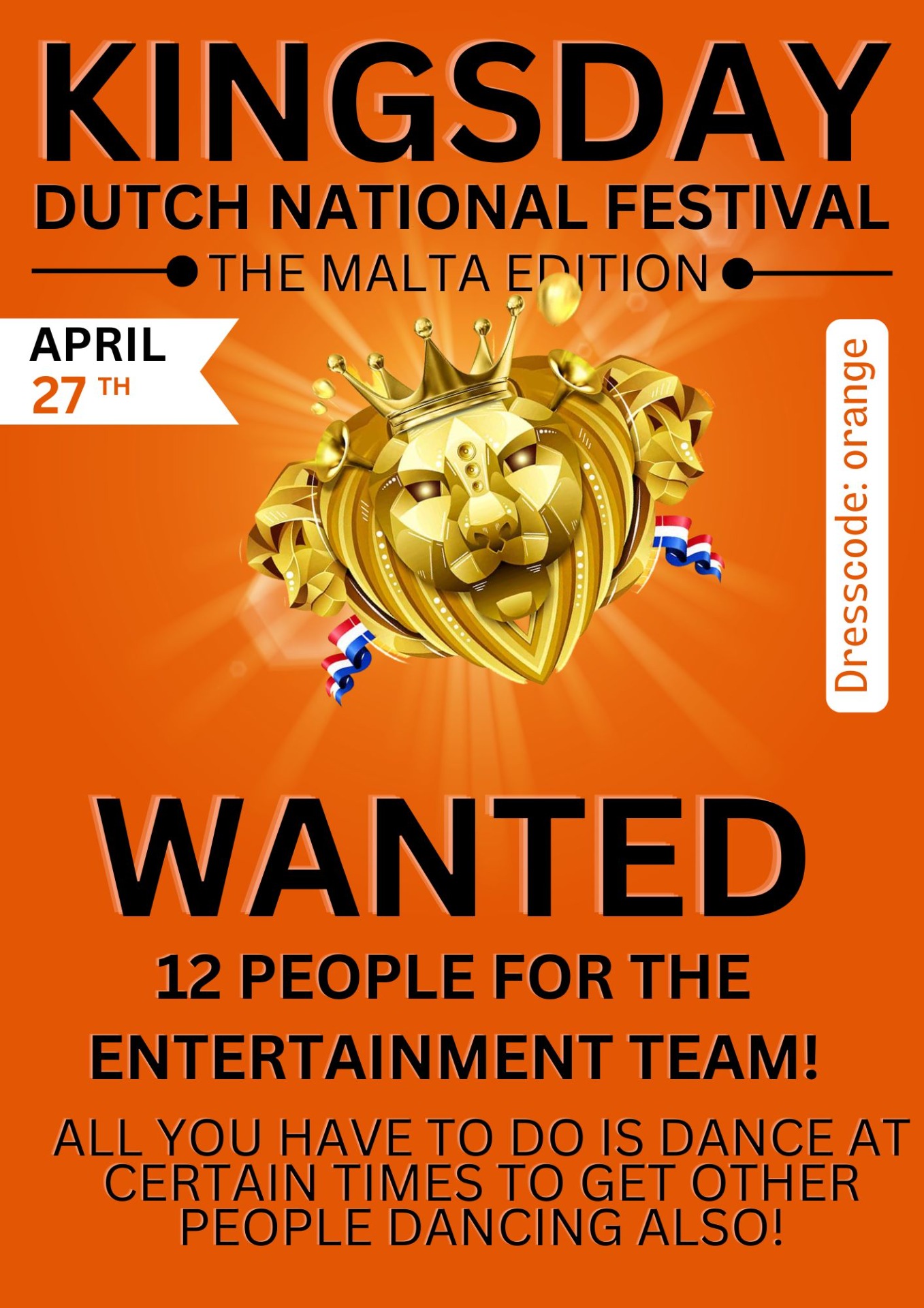 🎉 Word onderdeel van ons Entertainment Team – Dutch Kingsday, Malta Edition 2026! 🎉