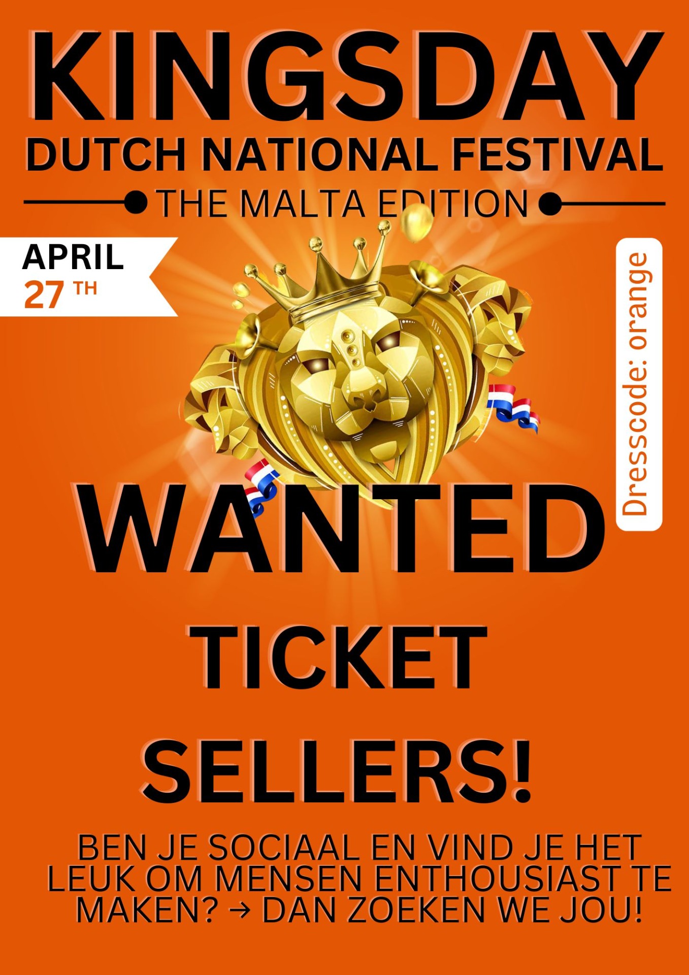 🎉 Gezocht: Ticketverkopers voor Koningsdag in Malta!