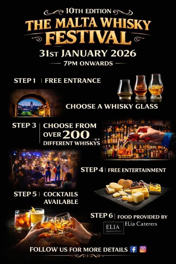 Ben jij een liefhebber van whisky, gezelligheid en internationale sfeer? Dan hebben we goed nieuws! Op zaterdag 31 januari 2026 vindt de 10e editie van het Malta Whisky Festival plaats in Giardini Lambrosa. Een bijzondere jubileumeditie die je niet wilt missen.